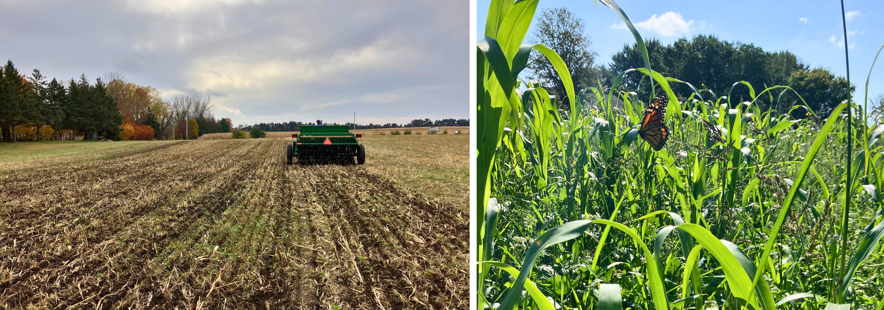 A former crop field is now becoming a diverse pollinator planting. In 2025, flowering cover crops provided nectar for migrating monarchs and other pollinators before the site was seeded with a 68-species native mix designed for long term habitat. Meadow blazing star plugs were added to attract monarchs and support future monitoring and education activities. Additional improvements, including culvert fencing and transplanting native plants, helped protect and strengthen existing prairie habitat.